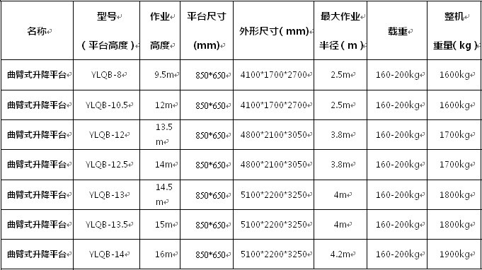 曲臂式升降機可跨越障礙進行高空作業,平臺升降到任何位置時,均可邊行走邊作業,結構緊湊,轉向靈活,其地盤的寬度可保證設備進入狹窄的通道及擁擠的工作區域。備用動力裝置,可操作工作平臺復位,方便的運輸方式,可被牽引到任何地方。易于識別的操作面板,多重的機械,電氣及液壓安全保護,先進的一體化的液壓電器集成系統。曲臂式升降機有:柴油自行式,拖車式,手拉式,電瓶式,車載式。