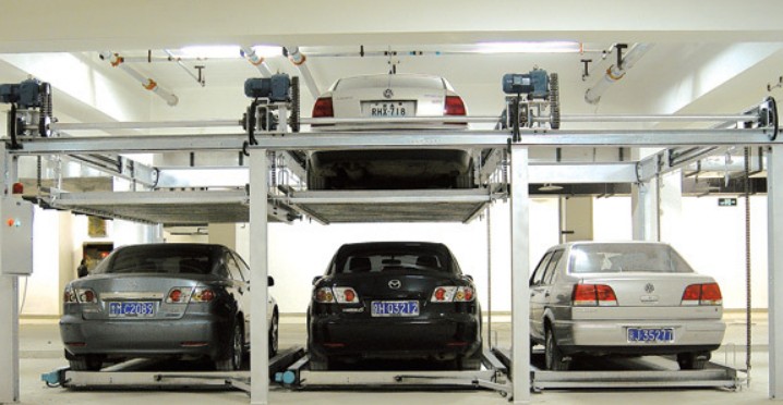立體車庫與地下車庫相比可更加有效地保證人身和車輛的安全,人在車庫內或車不準停位置,由電子控制的整個設備便不會運轉。應該說,機械車庫從管理上可以做到徹底的人車分流。在地下車庫中采用機械存車,還可以免除采暖通風設施,因此,運行中的耗電量比工人管理的地下車庫低得多。機械車庫一般不做成套系統,而是以單臺集裝而成。這樣可以充分發揮其用地少、可化整為零的優勢,在住宅區的每個組團中或每棟樓下都可以隨機設立機械停車樓。這對眼下車庫短缺的小區解決停車難的問題提供了方便條件。